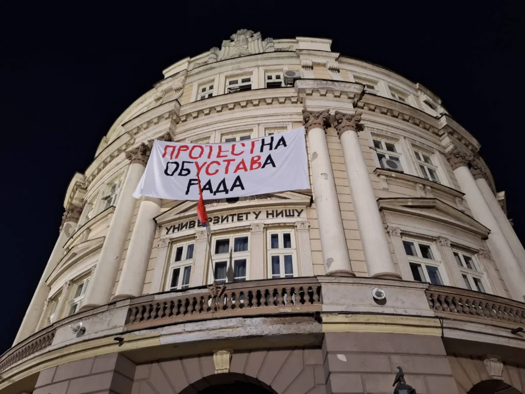 U Nišu su protesti održani pod parolom „Bani u Banovinu“. Tokom protesne šetnje, okupljeni su došli do zgrade Univerziteta u Nišu gde su okačili transparent „Protestna obUSTAVa rada“.