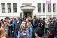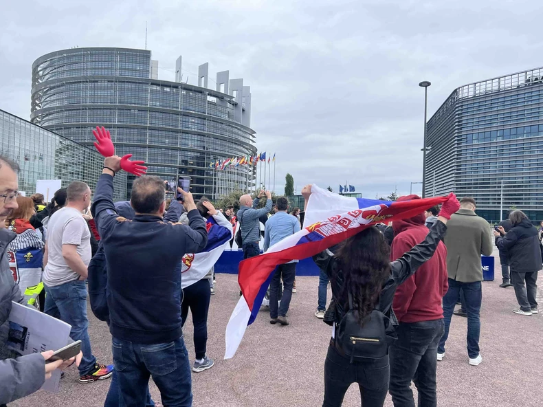 Grupa studenata biciklista, koja je putovala od Novog Sada do Strazbura, okupila se ispred Saveta Evrope kako bi održala miran protest i prenela snažnu poruku podrške Srbiji. Student Veljko sa Fakulteta tehničkih nauka poručio je okupljenima: „Nismo došli jer je bilo lako, nego jer je bilo – nephodno.“